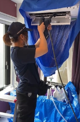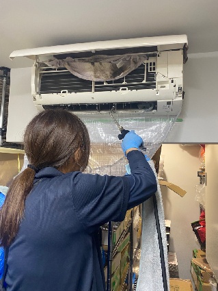 繊細な作業で、本体を痛めずエアコンの汚れを落とします